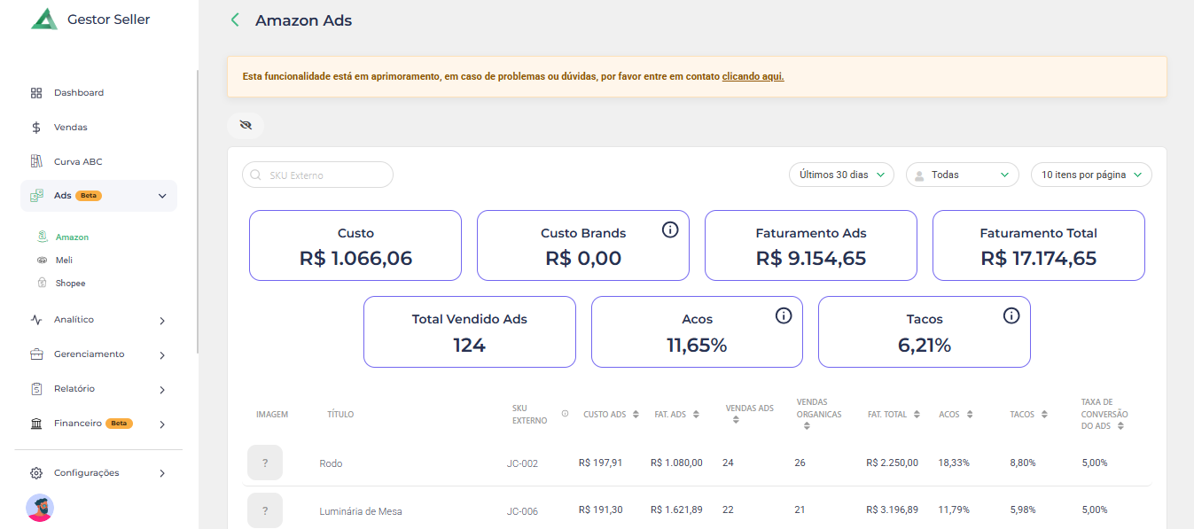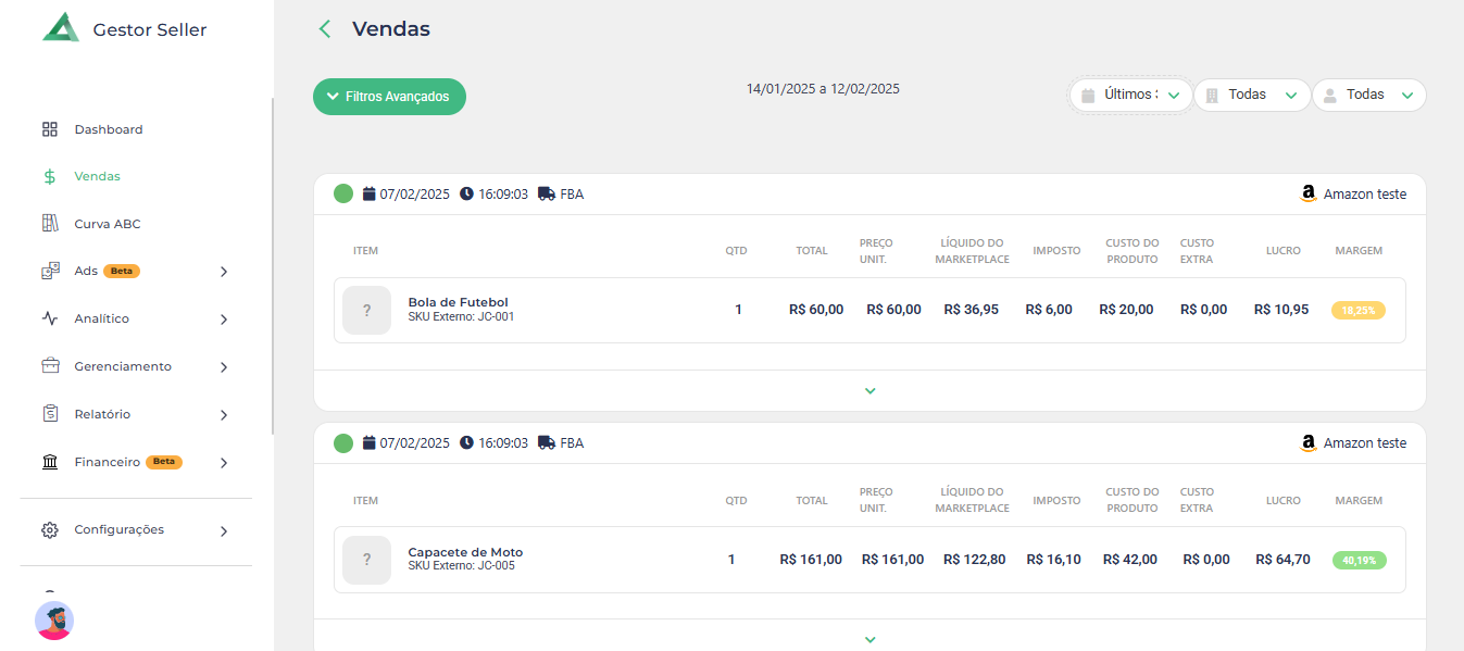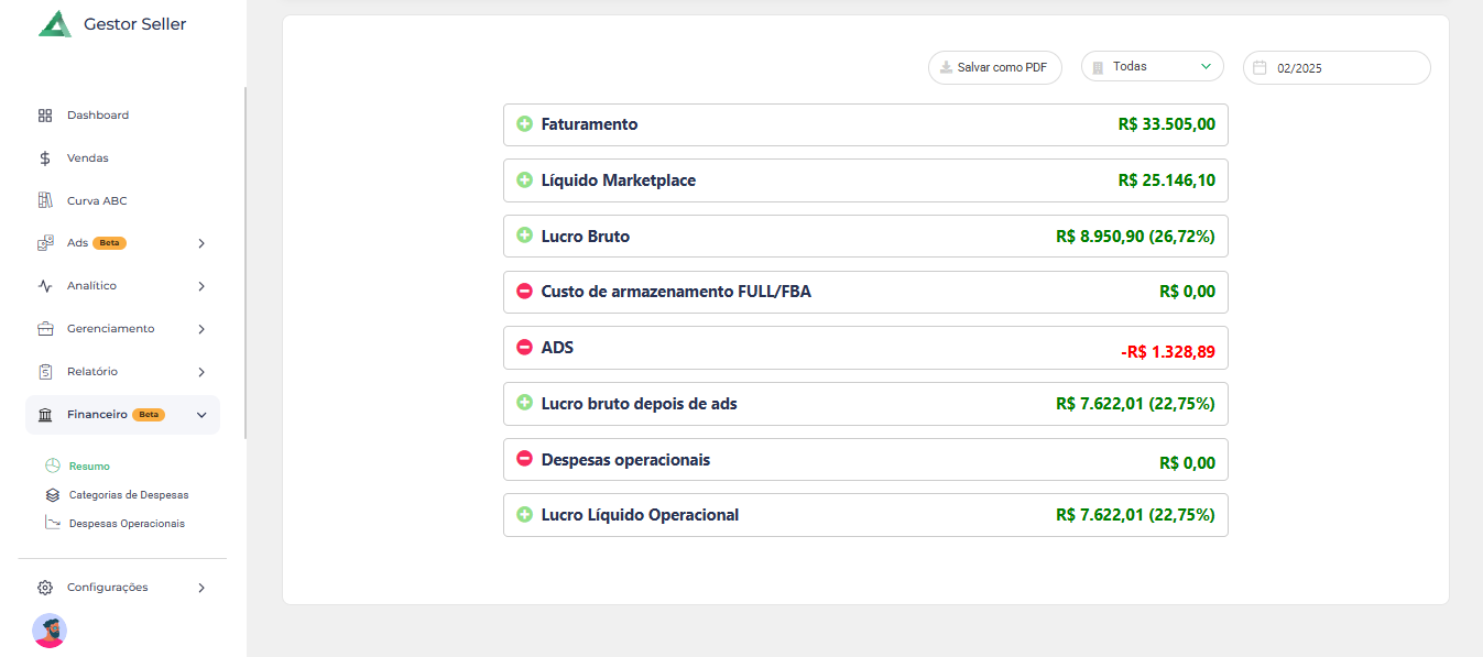 Com esses dados organizados e acessíveis, o Gestor Seller permite que você tome decisões estratégicas para otimizar lucros e reduzir custos.